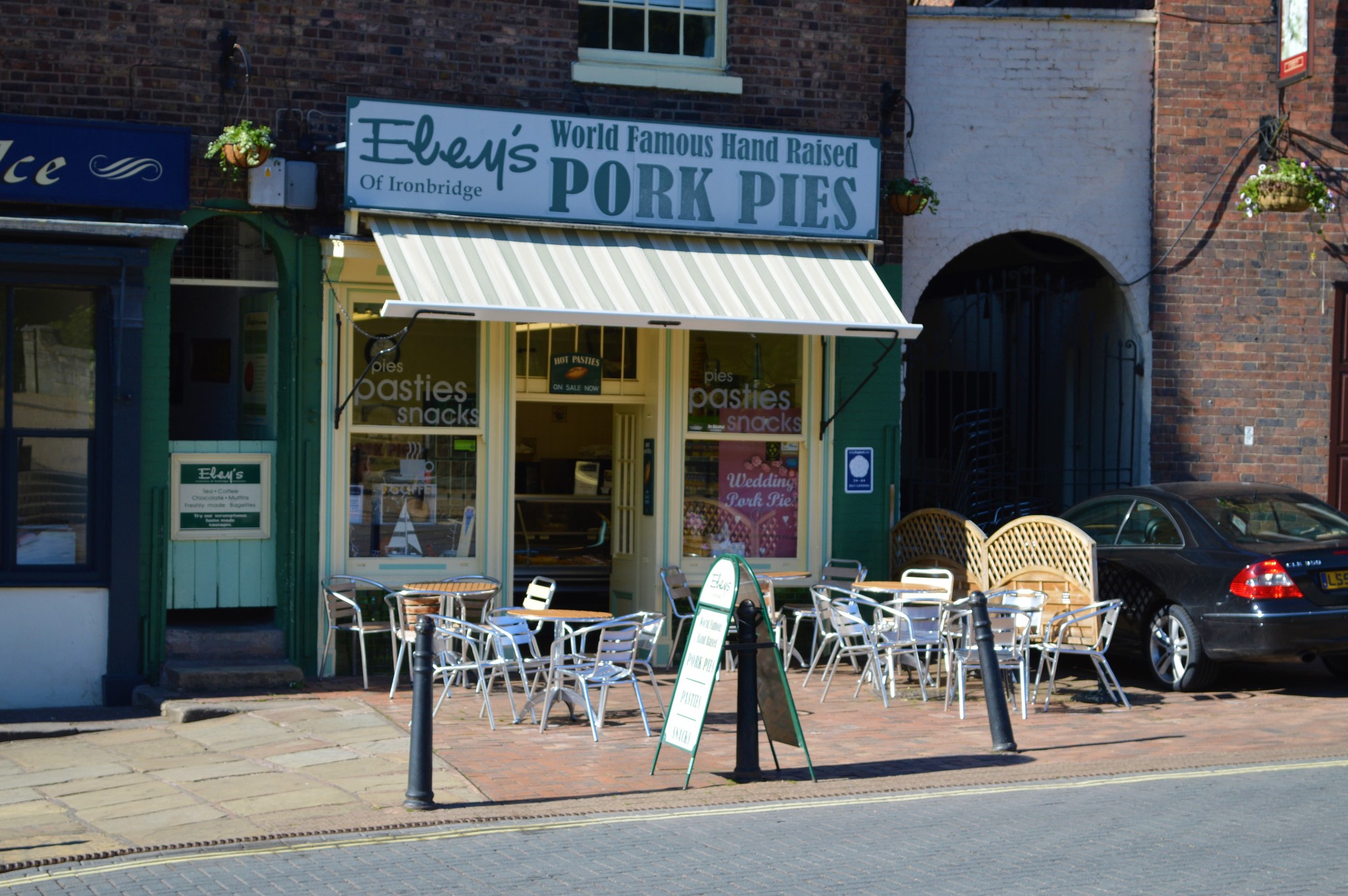 In the town center sits Ye Olde Pork Pie Shoppe with the black and white fronted Half Moon pub next door.